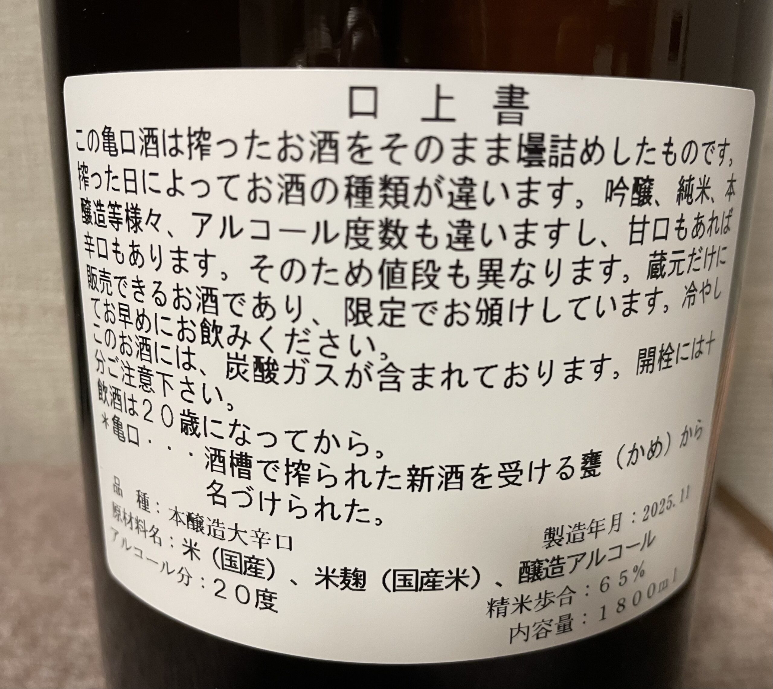 今回、手に入ったのは本醸造大辛口!